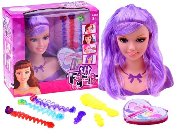 Urocza głowa w super modnym kolorze włosów, popiersie do nauki czesania, tworzenia pięknych fryzur, nauki przypinania spinek i robienia kucyków, świetnie się sprawdzi jak prezent dla małego kreatora fryzur. Często dzieci uwielbiają bawić się w fryzjerów, a często nie mają modeli chętnych do eksperymentowania z włosami. Dlatego proponujemy tę oto głowę do stylizacji z licznymi akcesoriami do ćwiczeń i upiększania.