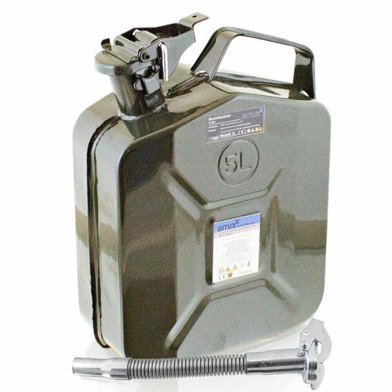 .Zestaw kanister metalowy z lejkiem, to idealne rozwiązanie dla wszystkich, którzy potrzebują przenośnego i bezpiecznego transportera na paliwo lub oleje. SET składający się z kanistra o pojemności 5 litrów oraz niezbędnego do wlewu lejka, okaże się niezastąpionym w przypadku potrzeby przechowywania zapasowego lub rezerwowego paliwa. Kanister wykonany jest z wysokiej jakości stali walcowanej na zimno o grubości 0,8 mm, co gwarantuje wytrzymałość i trwałość produktu. Wymiary 240x120x310mm sprawiają, że jest on łatwy do przechowywania i transportu. Wyposażony w szczelnie dopasowany korek zapewniający trwałe zamknięcie.