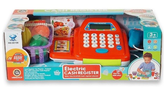 kasa sklepowa, na baterie, światło, muzyka, produkty; 36x16x12,5cm, W/B