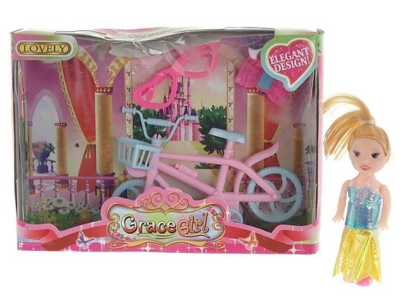 lalka mini 9cm z rowerkiem; 21x15x5cm, W/B