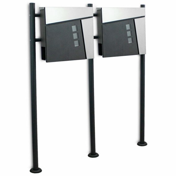 Podwójna i nowoczesna skrzynka na listy na stojaku jest odporna na opady atmosferyczne. Skrzynka pocztowa jest wykonana ze stali nierdzewnej, a grubość ścianek to około 0,8mm. Skrzynki posiadają otwory z tyłu, które pozwolą na łatwy montaż do słupków. Designerski wygląd zagwarantuje dbałość oraz styl na Twojej posesji.