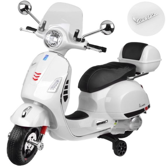 Vespa GTS została starannie dopracowana. Wygodne siodełko pokryte eko-skórą podnosi komfort jazdy. Ergonomiczne rączki z antypoślizgowymi wytłoczeniami sprawiają, że dziecko może pewnie prowadzić pojazd. Z myślą o bezpieczeństwie dziecka, pojazd został wyposażony w kółka boczne, gwarantujące stabilność podczas jazdy. Dodatkowo, Vespa posiada elektryczny hamulec, działający po zdjęciu nogi z pedałka gazu. Skuter posiada oświetlenie przód+ tył, przez co pojazd wygląda jeszcze bardziej realistycznie. Jak przystało na dwukołowca, motorek został wyposażony w prędkościomierz (naklejka-atrapa), który również jest podświetlany! Dodatkowo Vespa posiada owiewkę, oraz lusterka boczne (atrapy). Dzięki dopracowanym detalom dziecko może poczuć się jak prawdziwy kierowca!