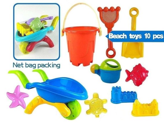 zestaw do piasku z taczką, 10 części; 43x22x21cm, siatka