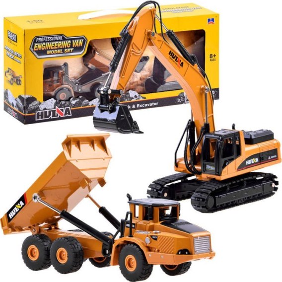 W zestawie: - koparka na gąsienicach, - wywrotka.