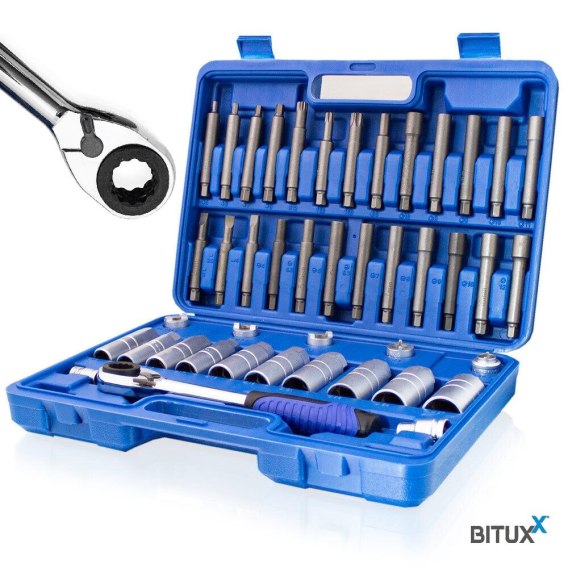 Narzędzie do amortyzatorów marki Bituxx do komplet 43 częściowych kluczy do przytrzymywania i kontrowania tłoka amortyzatora. Klucze są uniwersalne przez co pasują do wszystkich popularnych typów pojazdów.Wykonane z najwyższej stali pozwolą na długotrwałe użytkowanie. Nadają się zarówno dla profesjonalisty, jak i majsterkowicza.
